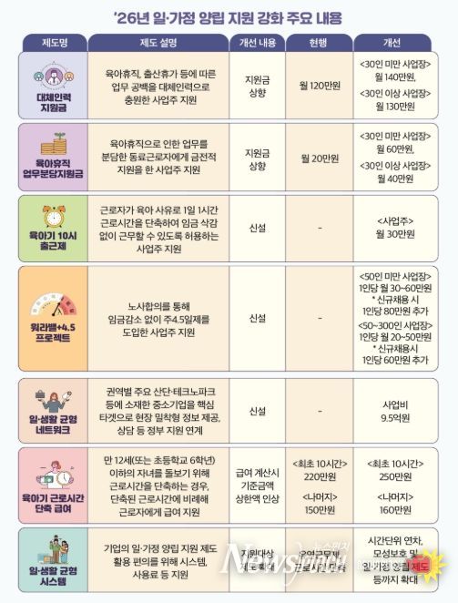 정부는 기업의 일·생활 균형 문화 확산을 위한 기업 지원 강화 방안을 정부 예산안에 반영했고, 국회 심사를 거쳐 내년에 추진할 계획이다.