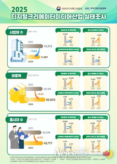 방송미디어통신위원회와 한국전파진흥협회는 28일 지난 한 해 동안 국내 디지털크리에이터미디어산업 현황을 살펴볼 수 있는 ‘2025년 디지털크리에이터미디어산업 실태조사’ 결과를 발표했다.