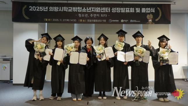 뉴스펀치 김길룡 기자 | 의왕시청소년재단 내 의왕시학교밖청소년지원센터는 11월 27일 포일어울림센터 9층 강당에서 2025년 의왕시꿈드림 성장발표회 및 졸업식을 개최했다.