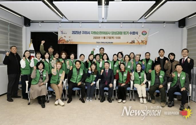 뉴스펀치 김길룡 기자 | 구리시는 지난 11월 27일 자원순환 교육센터에서 '자원순환 해설사 양성 10기 과정' 수료식을 개최했다고 밝혔다.