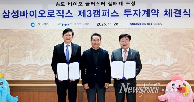 뉴스펀치 조평훈 기자 | 인천경제자유구역청은 28일 오후 인천시청에서 삼성바이오로직스와 토지매매계약을 체결했다고 밝혔다.