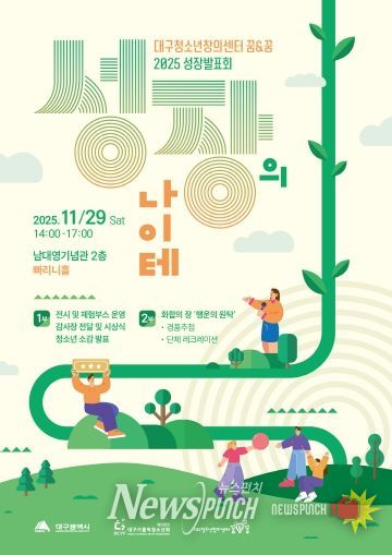 뉴스펀치 조평훈 기자 | 대구광역시는 대구청소년창의센터 꿈&꿈(센터장 김태완)이 11월 29일 오후 2시, 남대영기념관에서 청소년들의 한 해 동안의 성장과 활동 성과를 공유하는 ‘2025년 성장발표회-성장의 나이테’를 개최한다고 밝혔다.