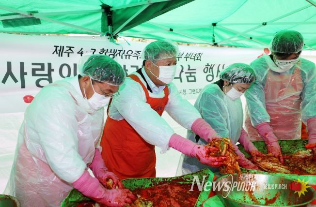 뉴스펀치 김길룡 기자 | 김완근 제주시장은 11월 28일 남현김치에서 열린 제주4·3희생자유족회 제주시지부 부녀회(회장 김효자) 주관 김장김치 나눔 행사에 참석해 제주4·3유족들과 함께 김장을 담그는 뜻깊은 시간을 가졌다.