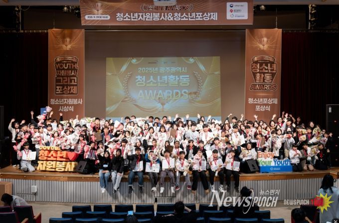 뉴스펀치 김길룡 기자 | 광주광역시는 29일 청소년수련원 청소년극장에서 ‘2025년 광주광역시 청소년활동 어워즈’ 시상식을 열었다.