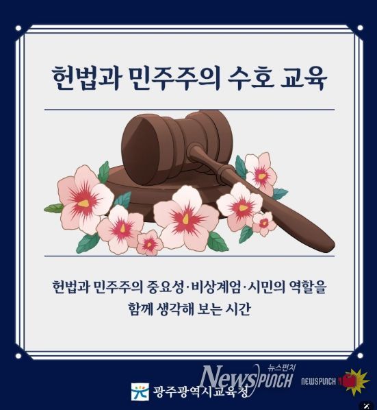 뉴스펀치 김길룡 기자 | 광주시교육청이 오는 12월 3~14일 ‘2024년 12·3 비상계엄’ 1년을 맞아 ‘2025년 헌법과 민주주의 수호 기간’을 운영한다.