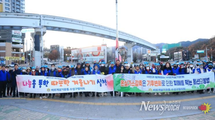 김대권 수성구청장은 “바르게살기운동 대구수성구협의회의 에너지 절약·나눔 실천 캠페인은 지역사회에 온기를 전할 뿐 아니라 기후변화 대응에 동참하는 의미 있는 활동”이라며 “구민 모두가 생활 속 작은 실천으로 친환경 수성구를 만드는 데 함께해 주셔서 감사드린다”고 전했다.