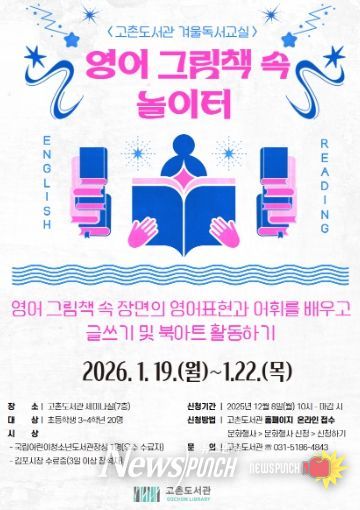 뉴스펀치 김길룡 기자 | 김포시 고촌도서관은 오는 2026년 1월 19일부터 1월 22일까지 초등학생 3~4학년을 대상으로 겨울독서교실 '영어 그림책 속 놀이터'를 운영한다.