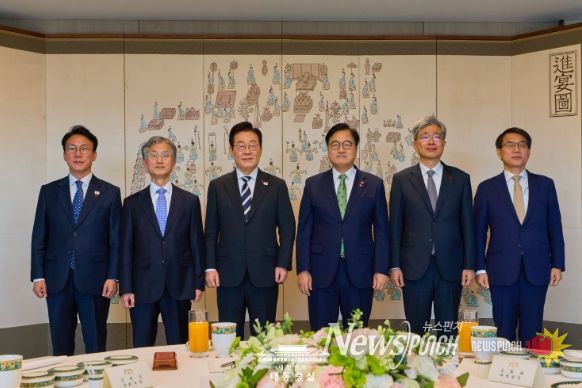 뉴스펀치 김용희 기자 | 3일 이재명 대통령과 5부 요인의 오찬은 1시간 40분 동안 화기애애한 분위기 속에 진행됐다.