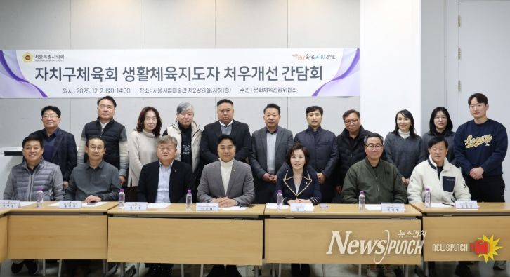 뉴스펀치 김완규 기자 | 서울특별시의회 문화체육관광위원회 이종배 위원장 직무대리(국민의힘, 비례대표)를 비롯한 위원들은 지난 12월2일(화) 자치구체육회 관계자들과 간담회를 열고 생활체육지도자 처우개선과 호봉제 도입을 위한 의견을 수렴했다.