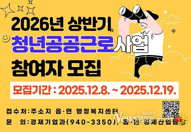 뉴스펀치 김길룡 기자 | 거창군은 2026년 상반기 청년 공공근로사업 참여자를 12월 8일부터 19일까지 모집한다.