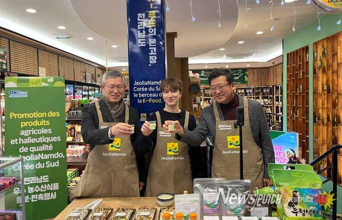 뉴스펀치 김길룡 기자 | 전라남도는 프랑스 파리에서 ‘전남 농수산식품 판촉전’을 지난 4일 열어 케이(K)-푸드 관심 확산 속 전남 농수산심품의 브랜드 인지도를 높였다.