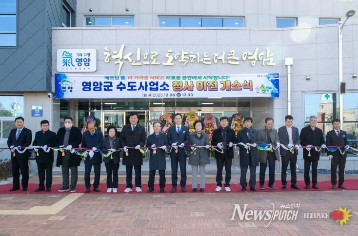 뉴스펀치 김길룡 기자 | 영암군이 8일 영암읍 천황사로12에서 군민 등 200여 명이 참석한 가운데 영암군수도사업소 청사 이전 개소식을 열고, 운영에 들어갔다.