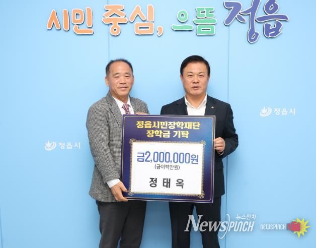 정읍시민장학재단은 정태옥 면장이 퇴직을 기념해 장학금 200만원을 기탁했다고 17일 밝혔다.