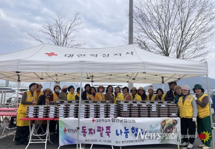 뉴스펀치 김길룡 기자 | 대한적십자사 함안군협의회(회장 박미정)는 지난 16일 한 해를 마무리하는 동짓달을 맞아 사랑의 동지팥죽 나누기 행사를 열었다고 밝혔다.