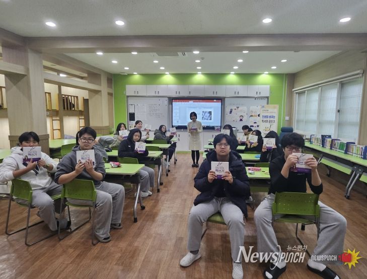 뉴스펀치 김길룡 기자 | 금산군 진산도서관은 지난 16일 진산중에서 찾아가는 작가 특강 성료했다.