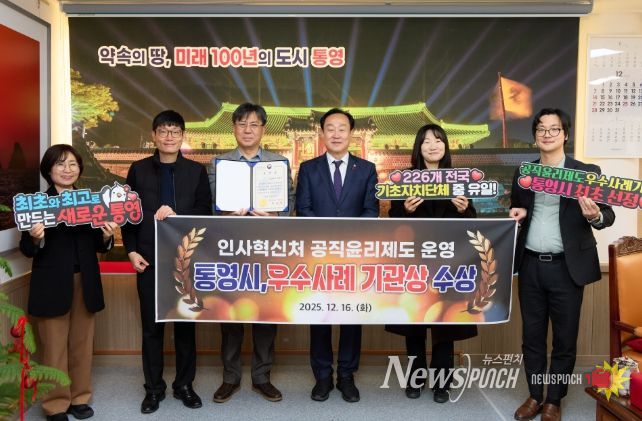 뉴스펀치 김길룡 기자 | 통영시는 지난 16일 인사혁신처가 주관하는‘공직윤리제도 운영 평가’에서 우수사례기관으로 선정돼 정부세종청사에서 인사혁신처장상을 수상했다.