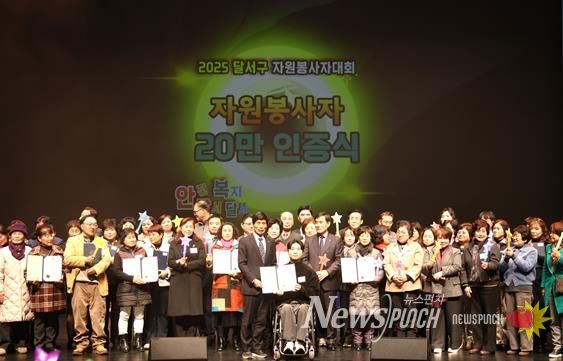 뉴스펀치 조평훈 기자 | 대구 달서구는 달서구자원봉사센터와 함께 16일 달서아트센터 청룡홀에서 자원봉사자와 초청 인사 등 500여 명이 참석한 가운데 ‘2025 달서구 자원봉사자대회’를 개최했다.