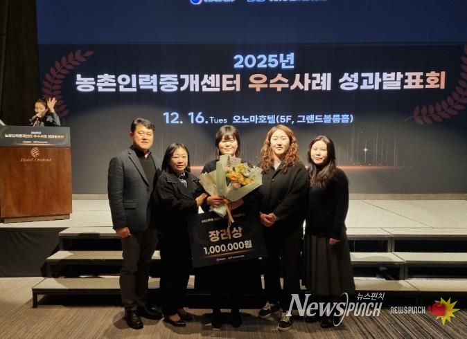 뉴스펀치 김길룡 기자 | 강화군은 지난 16일 농림축산식품부 주관으로 대전시 오노마호텔에서 열린 ‘2025년 농촌인력중개센터 우수사례 성과발표회’에서 강화남부농협이 장려상을 수상했다고 밝혔다.