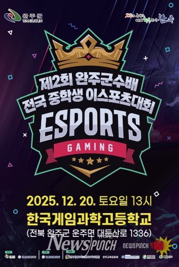 완주군은 오는 12월 20일, 한국게임과학고등학교에서 '제2회 완주군수배 전국 중학생 e스포츠대회'를 개최한다고 밝혔다.
