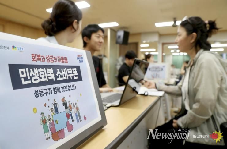 성동구는 구민 누구나 불편 없이 민생회복 소비쿠폰을 신청하고 사용할 수 있도록 사업 초기부터 전담 TF를 구성하여 체계적인 준비에 나섰다. 동주민센터 전체에는 전담 접수 창구를 설치하고 사전 모의훈련을 실시하는 등 신속한 지급 시스템을 마련했다.