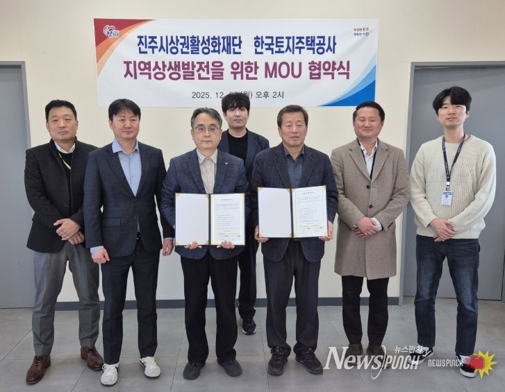 뉴스펀치 김길룡 기자 | 진주시상권활성화재단은 22일, LH 한국토지주택공사와 지역상권의 디지털 경쟁력 강화를 위한 업무협약(MOU)을 체결했다고 밝혔다.