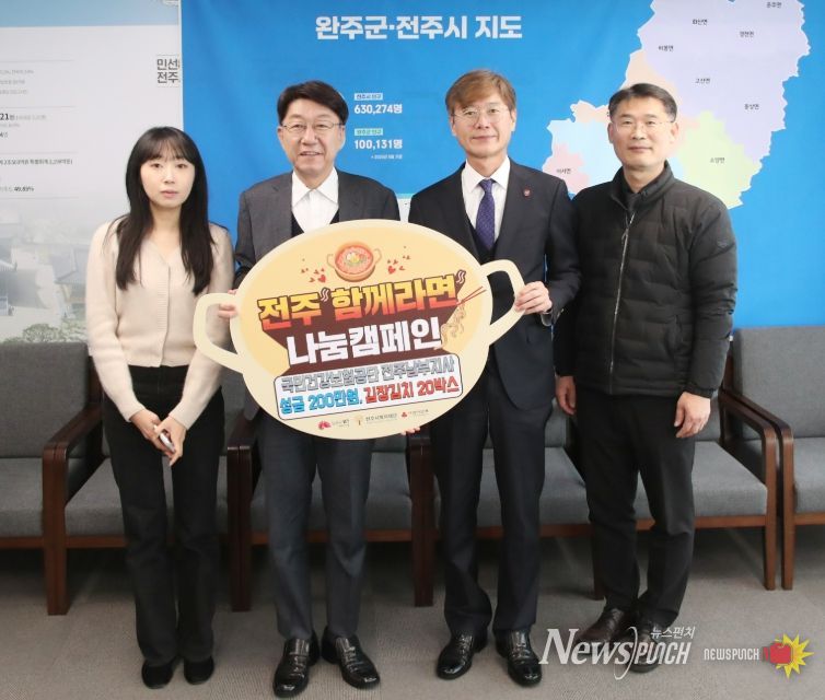 전주시 관계자는 “추운 겨울철, ‘전주함께라면’ 이용자들에게 라면과 곁들일 수 있는 김장김치는 더할 나위 없는 따뜻한 선물이 될 것”이라며 “이번 후원이 위기가구의 꽁꽁 언 마음을 녹이는 작은 위로가 되길 바란다”고 말했다.