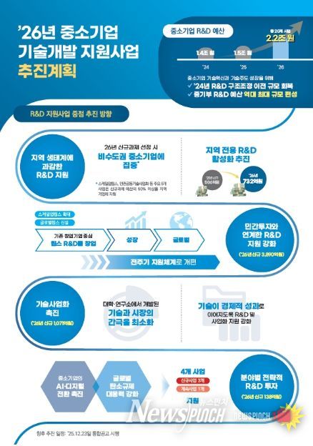 뉴스펀치 조평훈 기자 | 중소벤처기업부와 산업통상부는 양 부처가 추진하는 R&D사업의 지원내용·대상·절차·일정 등을 담은 ‘26년도 R&D사업 통합시행계획’을 함께 공고한다고 밝혔다.