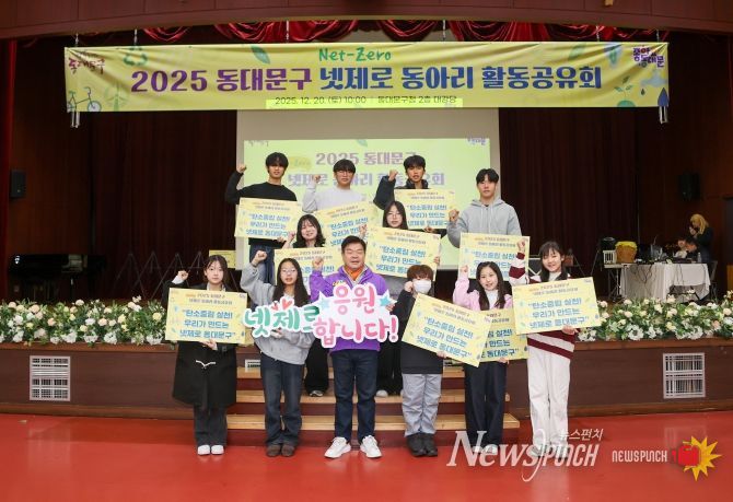뉴스펀치 김완규 기자 | 서울 동대문구가 청소년이 주도하는 탄소중립 실천을 ‘성과 공유’와 ‘확산’으로 이어가는 자리를 마련했다. 동대문구는 지난 20일 관내 초·중·고 학생으로 구성된 넷제로(탄소중립) 동아리가 한자리에 모여 1년간의 활동을 나누는 '2025 넷제로 동아리 활동 공유회'를 열고 행사를 성황리에 마무리했다고 밝혔다.