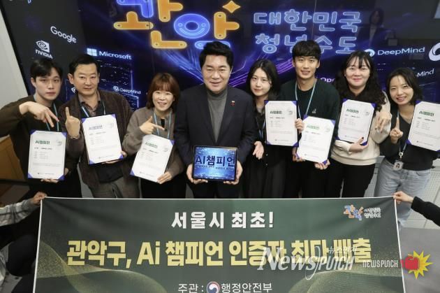 뉴스펀치 김완규 기자 | 관악구가 행정안전부 주관 ‘인공지능(AI) 챔피언 인증 과정’에서 9명의 직원이 인증을 획득하는 성과를 달성했다. 이번 인증으로 구는 서울시 자치구 중 최초로 인공지능(AI) 챔피언을 배출하게 됐다.