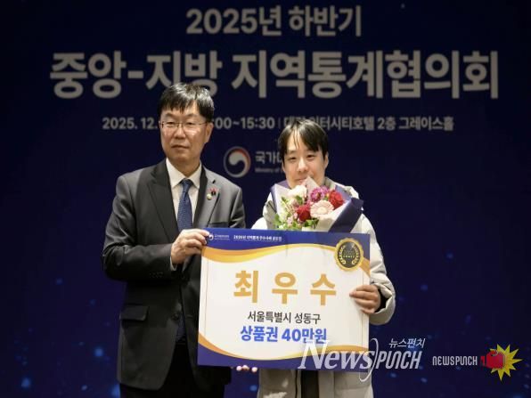 뉴스펀치 김완규 기자 | 서울 성동구는 국가데이터처가 주관한 ‘2025년 지역통계 우수사례 공모전’에서 최우수상을 수상했다고 밝혔다.