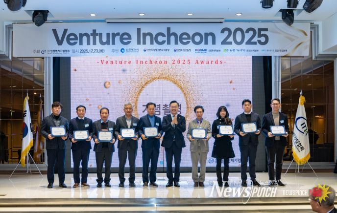 뉴스펀치 조평훈 기자 | 인천광역시와 인천벤처기업협회는 12월 23일 송도 라마다호텔에서 ‘Venture Incheon 2025 대회’를 개최하고, 지역의 우수 벤처기업인들을 격려했다.