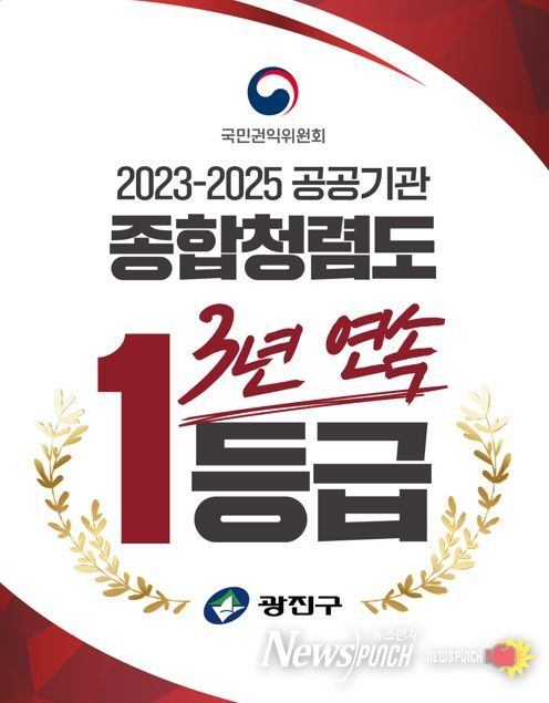 뉴스펀치 김완규 기자 | 광진구는 국민권익위원회가 주관한 2025년 공공기관 종합청렴도 평가에서 3년 연속 1등급을 달성했다.