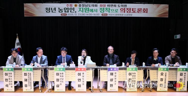 도의회는 23일 서산시 문화회관 소공연장에서 ‘청년농업인, 지원에서 정착으로’를 주제로 토론회를 개최했다. 이연희 의원(서산2·국민의힘)이 좌장을 맡았으며, 연암대학교 채상헌 교수가 주제 발표를 진행했다. 또한 농축산 분야 실무 국장, 금융 전문가, 청년농업인 등이 토론자로 참여해 현장의 현실과 제도 개선 방안을 폭넓게 논의했다.