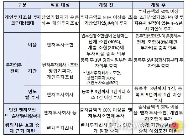 이를 통해 시장 상황을 반영하여 보다 유연한 투자 전략 수립이 가능해질 전망이다. 특히 초기투자 생태계의 주축을 이루는 개인투자조합과 창업 기획자의 활동 반경이 한층 넓어질 것으로 기대된다.