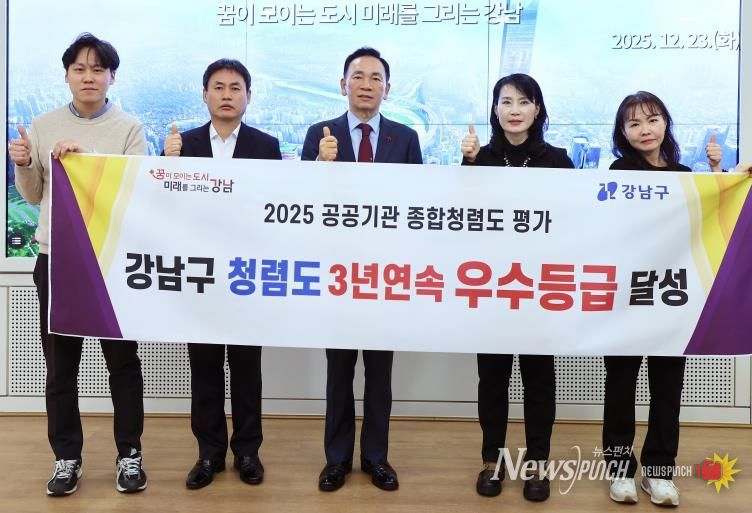 뉴스펀치 김완규 기자 | 꿈이 모이는 도시, 미래를 그리는 강남구가 국민권익위원회가 주관한 ‘2025년 공공기관 청렴도 평가’에서 3년 연속 ‘종합청렴도 우수등급’을 받았다.