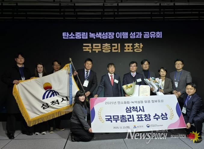 뉴스펀치 김길룡 기자 | 삼척시는 12월 23일 서울 노보텔 앰배서더 호텔에서 대통령 직속 탄소중립녹색성장위원회로부터 탄소중립 유공 국무총리표창을 수상하는 영예를 안았다.