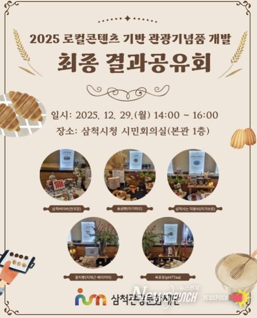 뉴스펀치 김길룡 기자 | 삼척관광문화재단은 '2025 로컬콘텐츠 기반 관광기념품 개발 최종 결과공유회'를 개최하고, 녩로컬콘텐츠 기반 관광기념품 개발’사업을 통해 선정·개발된 관광기념품의 성과를 공유할 계획이라고 밝혔다.