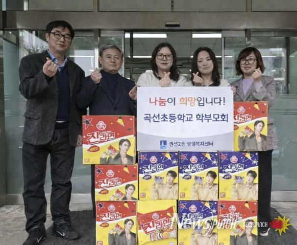 뉴스펀치 김길룡 기자 | 권선2동 소재 곡선초등학교 학부모회는 권선2동행정복지센터에 “사랑의 라면”을 기탁했다.