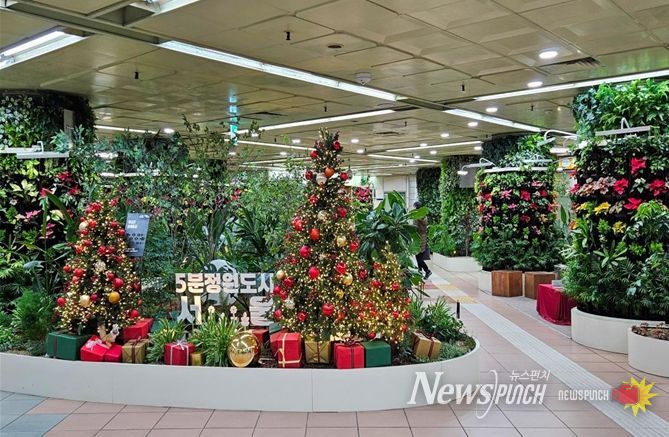 뉴스펀치 김완규 기자 | 서울시는 연말을 맞아 지하철 역사 실내정원인 ‘서울 아래숲길’ 5곳에 계절의 감성을 더한 크리스마스 연출과 겨울 정원을 선보인다고 밝혔다.