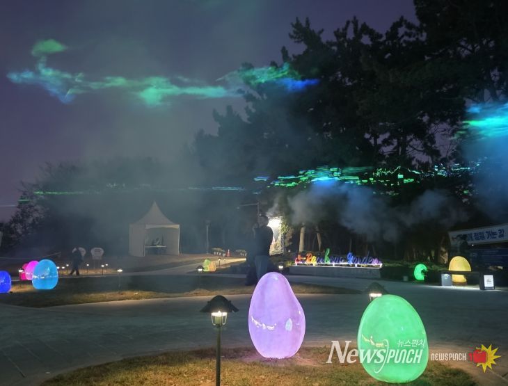 뉴스펀치 정홍균 기자 | 익산시가 연말연시를 맞아 신흥공원 오로라광장에서 야간 오로라 레이저 쇼를 운영한다.