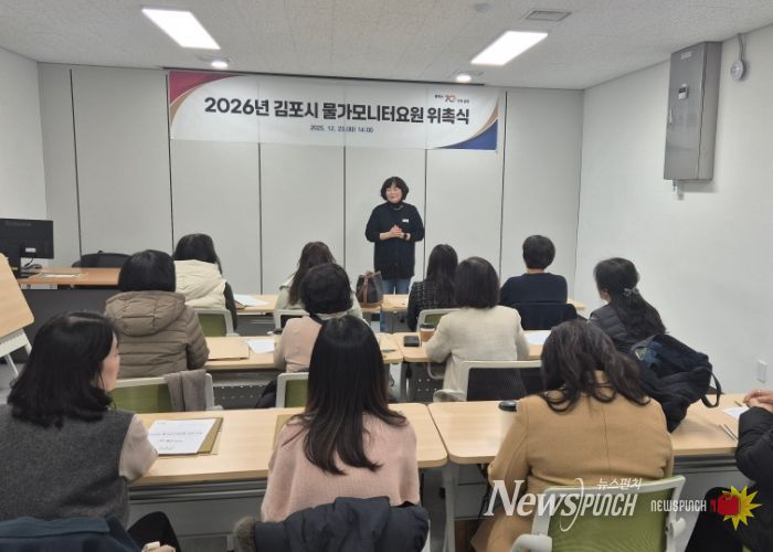 뉴스펀치 김길룡 기자 | 김포시는 12월 23일 오후 2시 김포시청 제3별관 중회의실에서 2026년 김포시 물가모니터요원 위촉식을 개최했다.