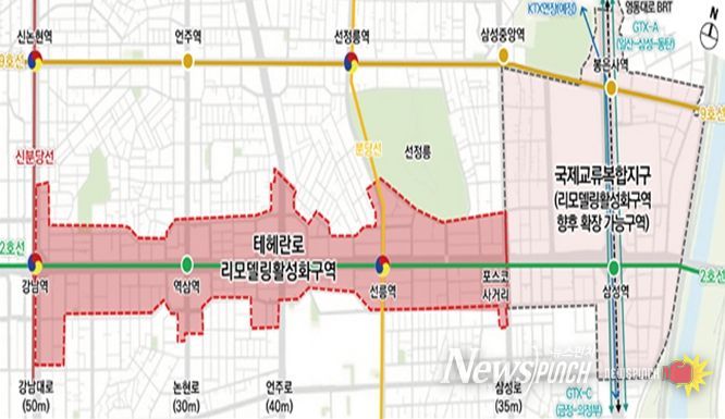 뉴스펀치 김완규 기자 | 서울시는 테헤란로 일대 도심 업무지역을 ‘리모델링활성화구역’으로 지정해 철거 없이 기존 건물을 보강하고 최대 30% 증축을 허용하는 새로운 방식으로 기능을 고도화하는 등 도심·서남·강남권 5곳 거점 개발을 본격화한다.