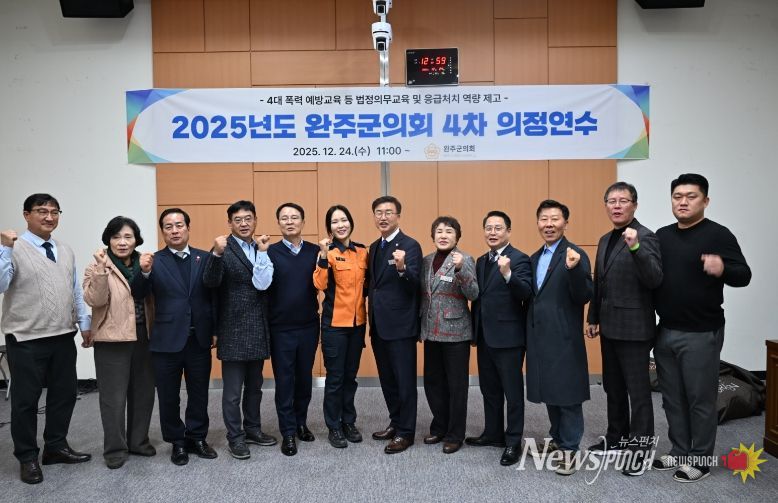 뉴스펀치 김길룡 기자 | 완주군의회는 24일 군의회 문화강좌실에서 ‘2025년도 제4차 의정연수’를 실시했다.