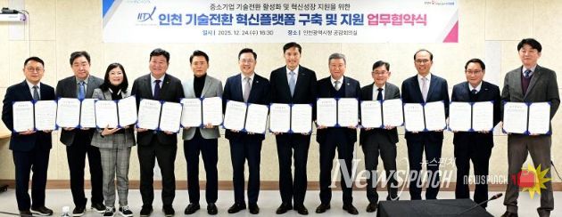 인천시는 중소기업의 기술혁신과 기술전환을 체계적으로 지원하기 위해 기술보증기금, 인천테크노파크, 인천지식재산센터, 8개 중소기업 협·단체와 함께 ‘중소기업 기술전환 혁신플랫폼 구축 및 지원을 위한 업무협약’을 12월 24일 체결했다.