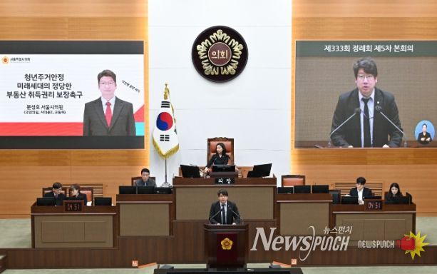 뉴스펀치 김완규 기자 | 문성호 서울시의원(국민의힘, 서대문2)이 제333회 서울특별시의회 정례회 마지막 본회의에서 1990년 서대문구 등 서울시에서 발생한 부동산폭력단 오씨 사건을 예로 들며, 범죄행위로 취득한 불법 수익이 환수되지 않고 아직도 버젓이 호화를 누리는 행태를 비판하며, 이로 인해 현재 서울시민의 주거 안정은 거주 불안으로 바뀌었으므로 이를 바로잡아 정당한 부동산 취득권리를 보장해야 함을 주장했다.