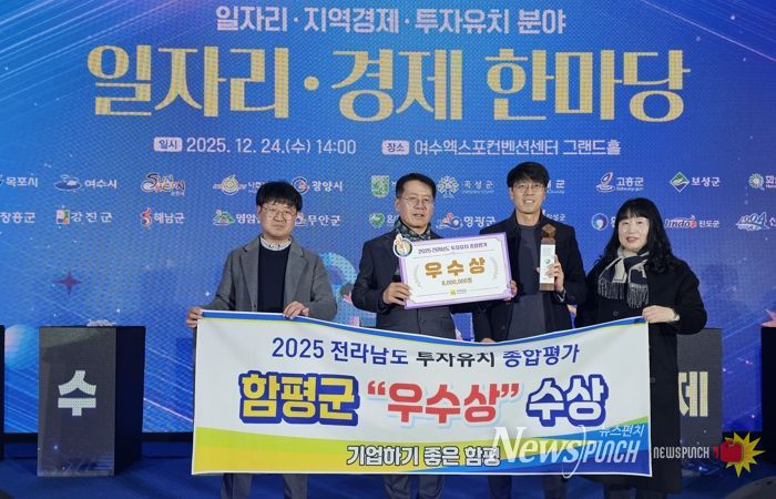 군 관계자는 “이번 수상은 열악한 투자 여건 속에서도 기업 유치를 위해 힘써 온 공직자들의 노력과, 함평을 믿고 투자해 준 기업들의 협력이 함께 이뤄낸 성과”라며 “앞으로도 ‘기업하기 좋은 함평’을 목표로, 지역 산업 경쟁력 강화와 양질의 일자리 창출을 위한 투자유치 활동을 지속해 나가겠다”고 말했다.