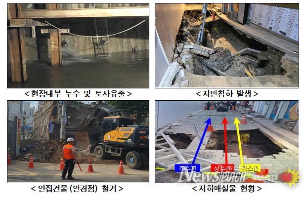 또한, 지속된 누수에 대한 대응이 미흡했던 점도 사고 원인으로 지적됐다. 지하안전평가서에 ‘지하수 유출 시 추가 그라우팅을 시행’하도록 명시되어 있음에도, 국부적인 수평그라우팅만 반복한 채 수직그라우팅을 통한 근본적인 지반보강이 이루어지지 않은 것을 확인했다.