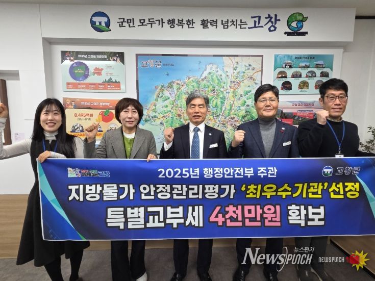 뉴스펀치 정홍균 기자 | 고창군이 행정안전부 주관 ‘2025년 지방물가 안정관리 평가’에서 전북 군 단위 가운데 유일하게 최고 등급인 ‘가등급’을 받아 ‘최우수 기관’으로 선정됐다고 26일 밝혔다.