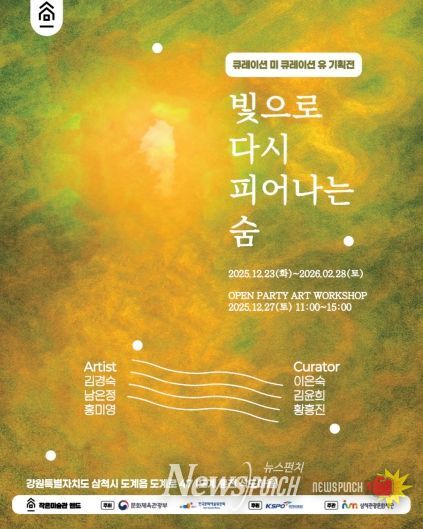 뉴스펀치 김길룡 기자 | 삼척시와 삼척관광문화재단은 도계읍 흥전 삭도마을에 새롭게 조성된 ‘작은미술관 앤드’의 신규 전시로, 큐레이션 미×큐레이션 유 소통 기획전 '빛으로 다시 피어나는 숨'을 12월 23일부터 2026년 2월 28일까지 선보인다.
