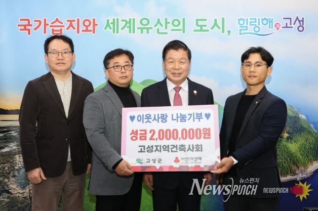 뉴스펀치 김길룡 기자 | 고성군은 대한건축사협회 고성지역건축사회(회장 신재규)가 12월 24일 고성군을 방문하여 관내 저소득계층에 전달해 달라며, 이웃돕기 성금 200만 원을 기탁했다.